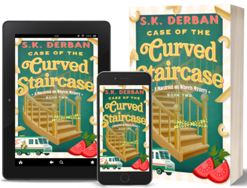 Case of the Curved Staircase is the second book in author S.K. Derban's delectably culinary-themed and faith-forward Macaroni on Wheels Mystery series, featuring San Diego's Little Italy community chef Terza Tiepolo and her best friend, Hawaiian transplant Moheenie Lakalaka Brickman. Terza and Mo are compelled to investigate when Terza discovers the wife of one of their clients dead from an apparent fall down her home's magnificent staircase on the morning after her surprise birthday party, and the officers on the scene disregard obvious clues that her death was no accident.